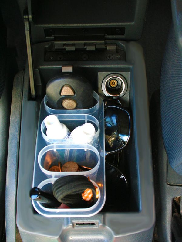 Rather than dispose of those old gum containers, reuse it as a change holder and plug it into your cup holder.
